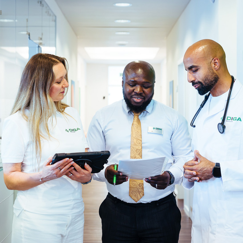 DIGA Medcare unterstützt Unternehmen dabei, standortübergreifende Betreuungsstrukturen aufzubauen, Abläufe zu harmonisieren und die arbeitsmedizinische Versorgung überall auf demselben Niveau sicherzustellen. So entsteht eine konsistente Betreuung, die flexibel, effizient und unabhängig vom Einsatzort funktioniert.